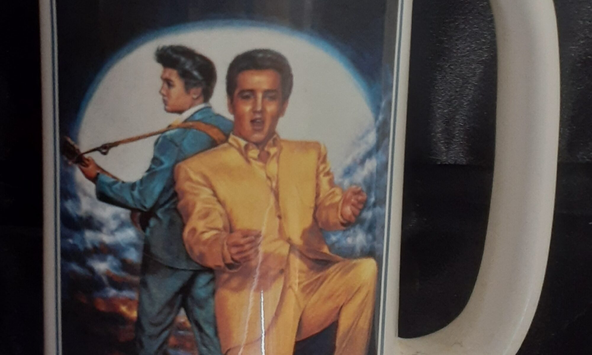 Rockin’ In The Moonlight Sixth in the Elvis Remembered Stein Collection. The artwork for this stein made especially by artist Susie Morton. Made in the USA. 16 ounces stands 6 inches tall. From 1989. In good condition with no chips or cracks. We ship by Canada Post.